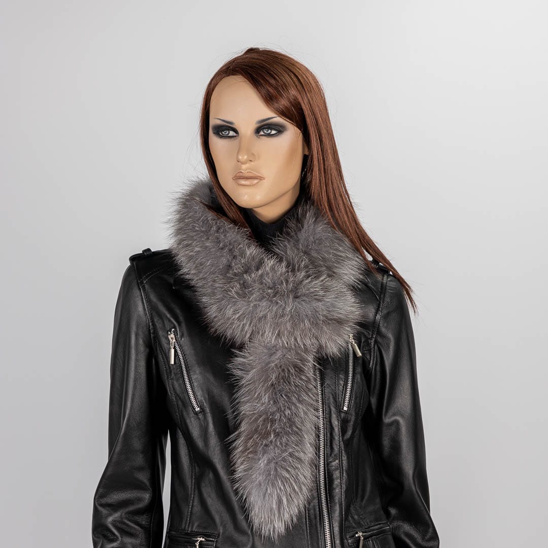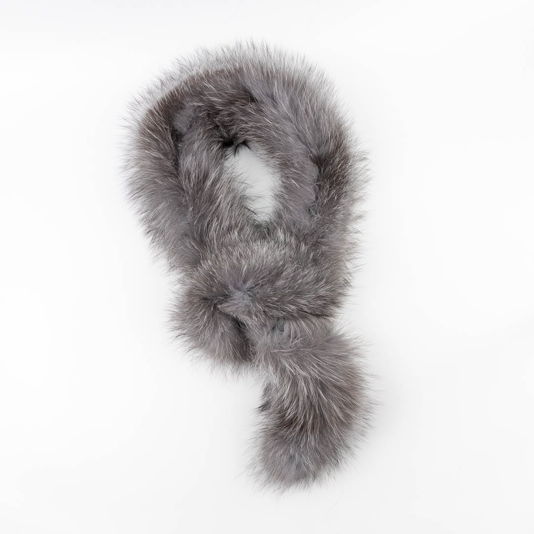 Mid Grey Fox Fur Scarf with Loop-Tie Scarf
