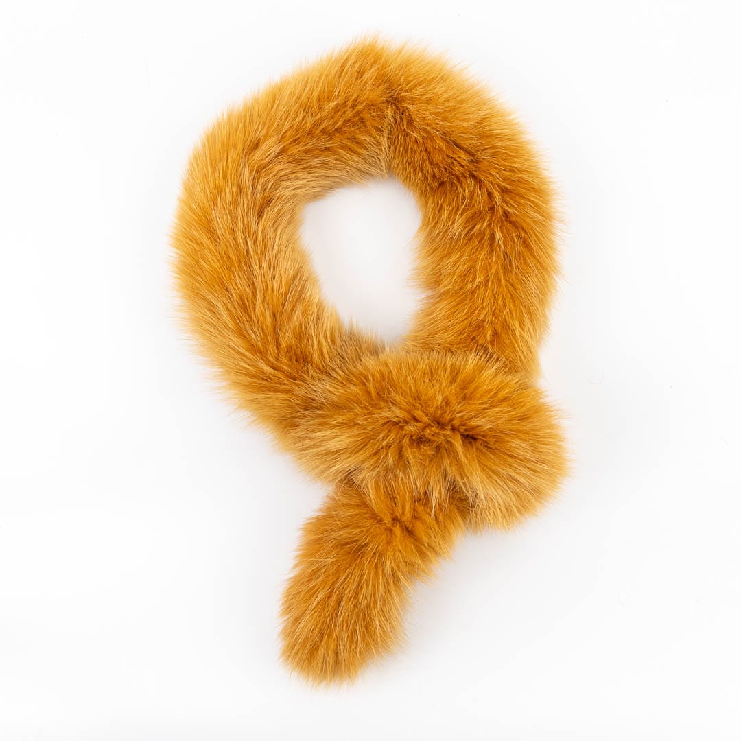 Mustard Fox Fur Scarf with Loop-Tie Scarf